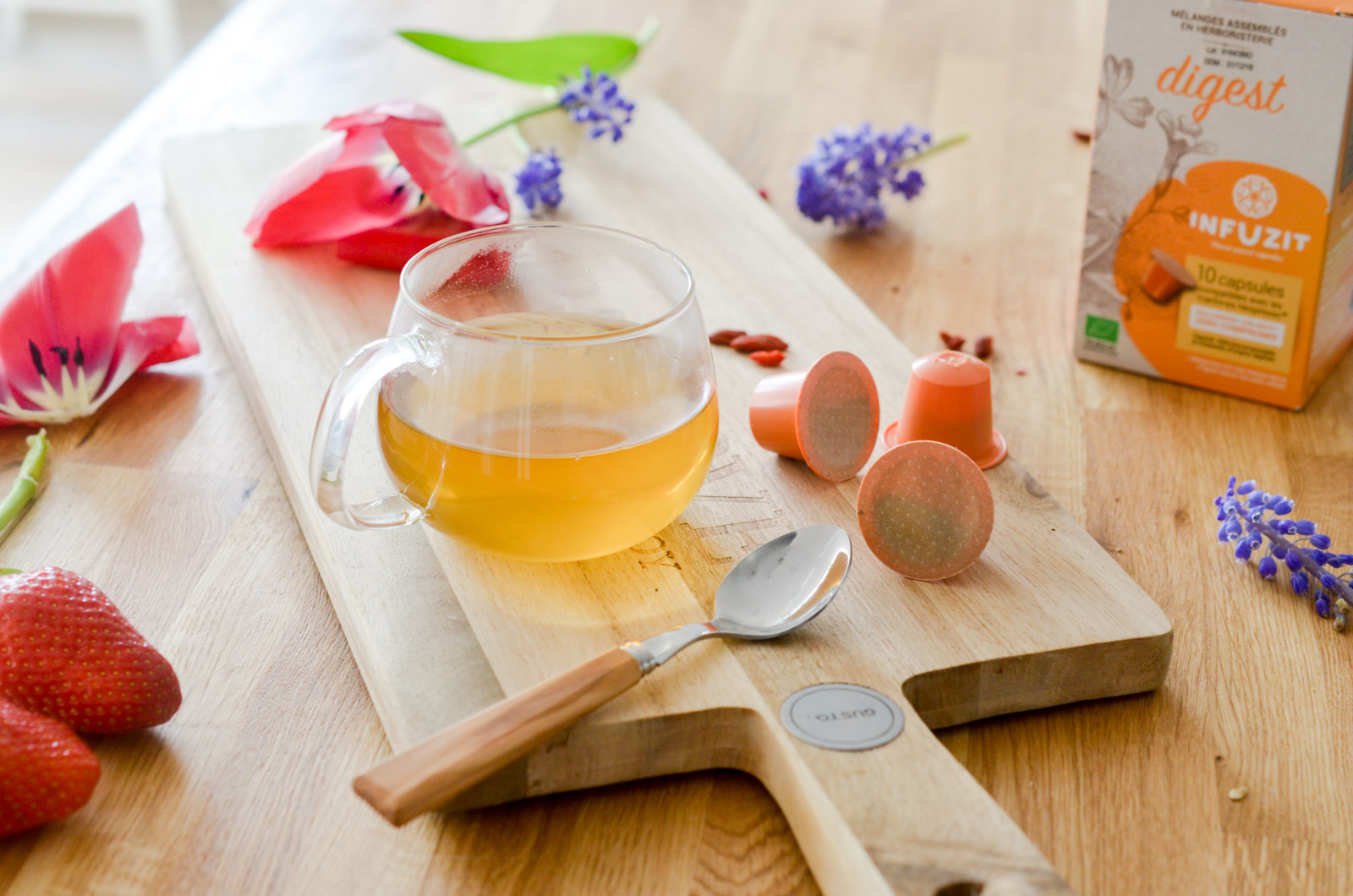 Et pourtant Infuzit a développé une gamme d’infusions bio très goûteuses aux vertus santé intéressantes. J’ai testé les infusions « Digest » à base de fenouil, d’anis vert, de cumin fruit, de matricaire fleur et de menthe nanah. Un mélange de plantes idéal pour éviter les ballonnements et vous aider à mieux digérer après un repas copieux. Et détail d’importance sans lequel je n’aurais même pas considéré cette infusion : les capsules sont 100% biodégradables.