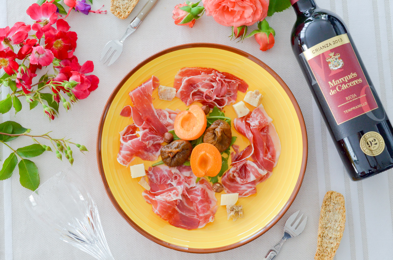 Disposez harmonieusement tous les éléments sur un plat de présentation et dégustez avec un pain à mie généreuse et … un bon Rioja (à consommer avec modération bien sûr)… Enjoy ! :-)