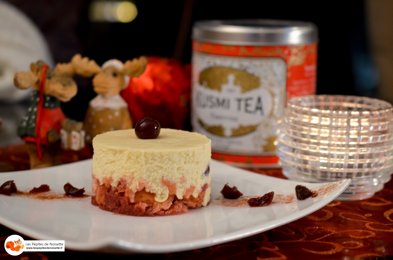 Pour changer de la bûche classique de Noël, voici une recette légère de bavarois. Inspirée par les nouveautés du moment, j’ai réalisé ce bavarois avec 2 spécialités de la marque Jours Heureux: les griottes au Kirsch et les biscuits roses de Reims … ainsi que l’élégant thé Tsarevna de chez Kusmi Tea de cet hiver.
