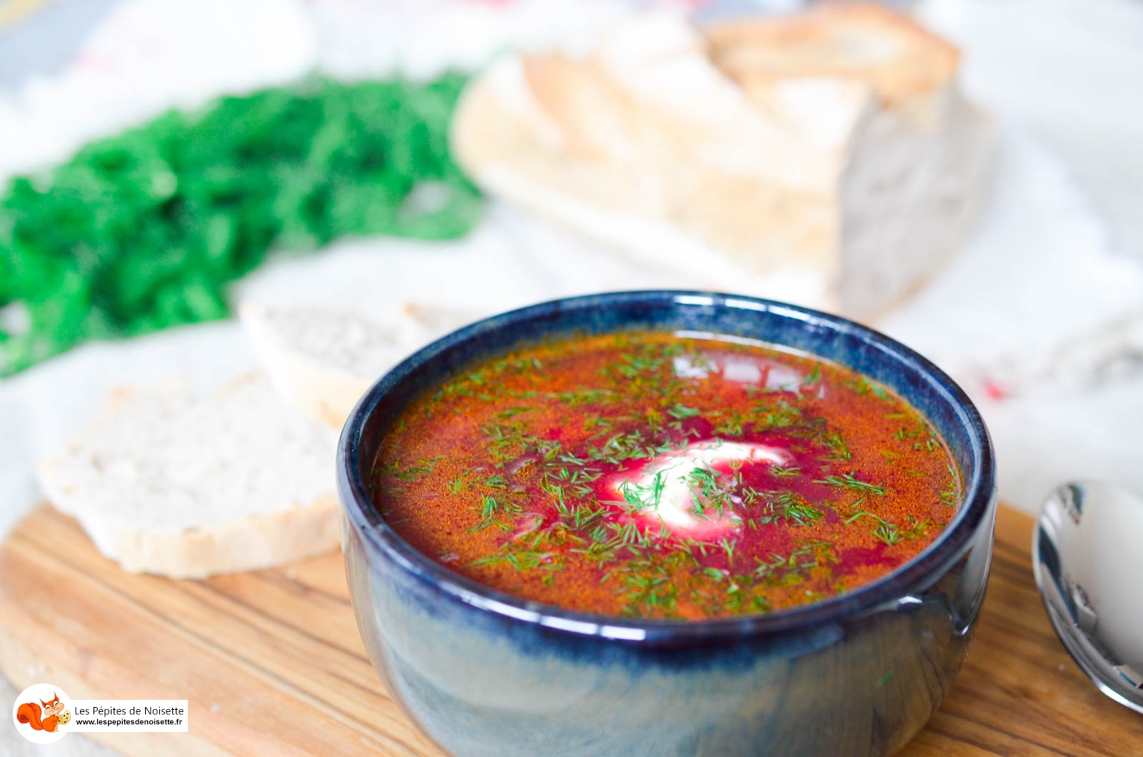 Une soupe light originaire des pays d’Europe de l’Est qui change de l’ordinaire. A base de betterave, de chou et de tomates, une belle manière de clôturer cette semaine riche en découvertes culinaires.