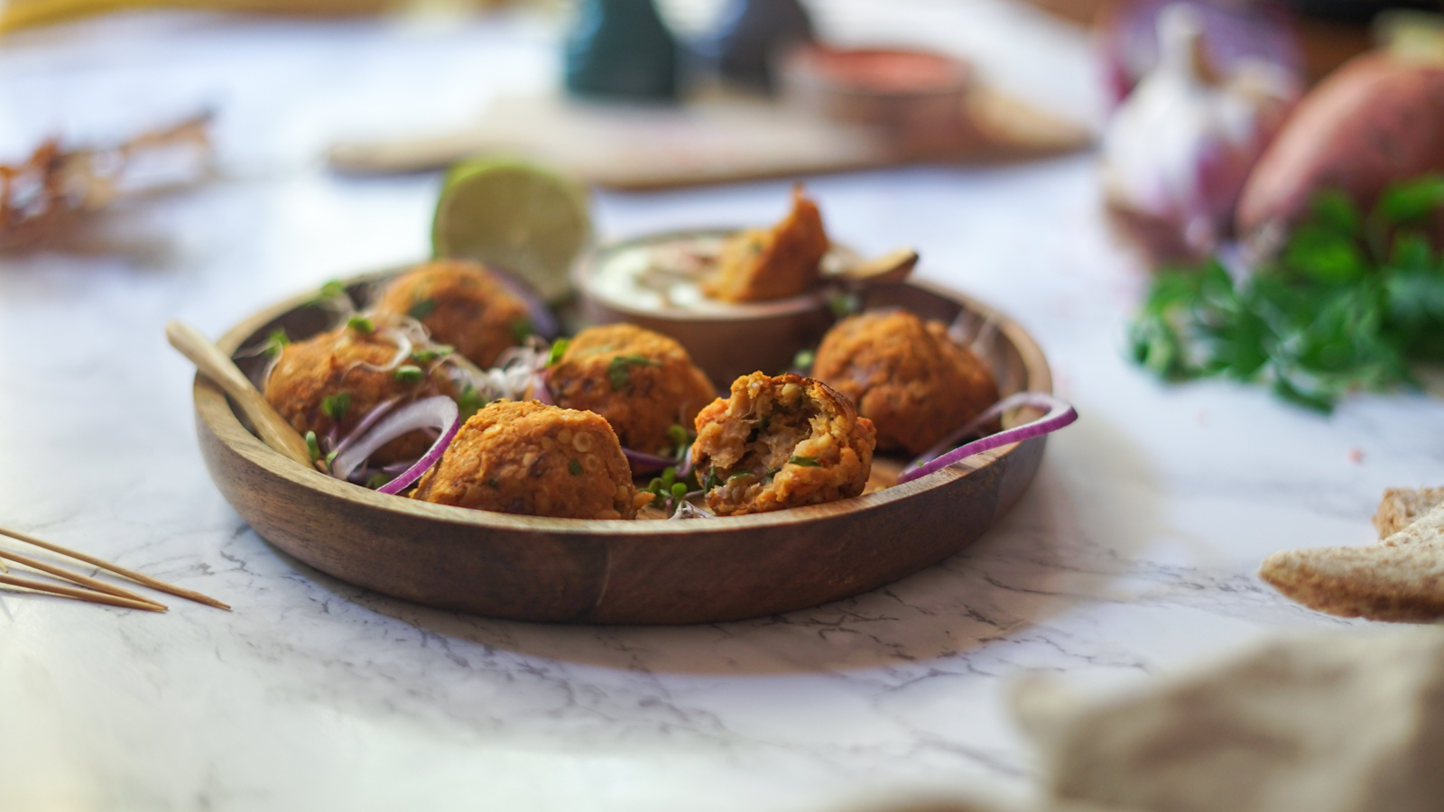 Une recette de boulettes végétariennes pleine de saveurs ! Des lentilles corail, de la patate douce, quelques épices et une petite sauce yaourt curry… vraiment délicieux. A déguster aussi bien pour l’apéro qu’en plat principal avec un peu de riz et une belle salade de saison.
