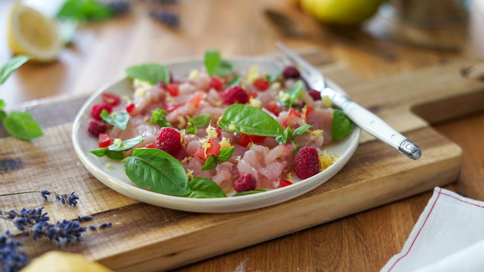 Une recette fraiche à réaliser en quelques minutes chrono ! Je vous donne ici une recette toute simple de carpaccio de thon avec une touche de citron et de basilic… et une bonne huile d’olive cela va de soit. Il ne faut pas grand chose pour bien manger au final.