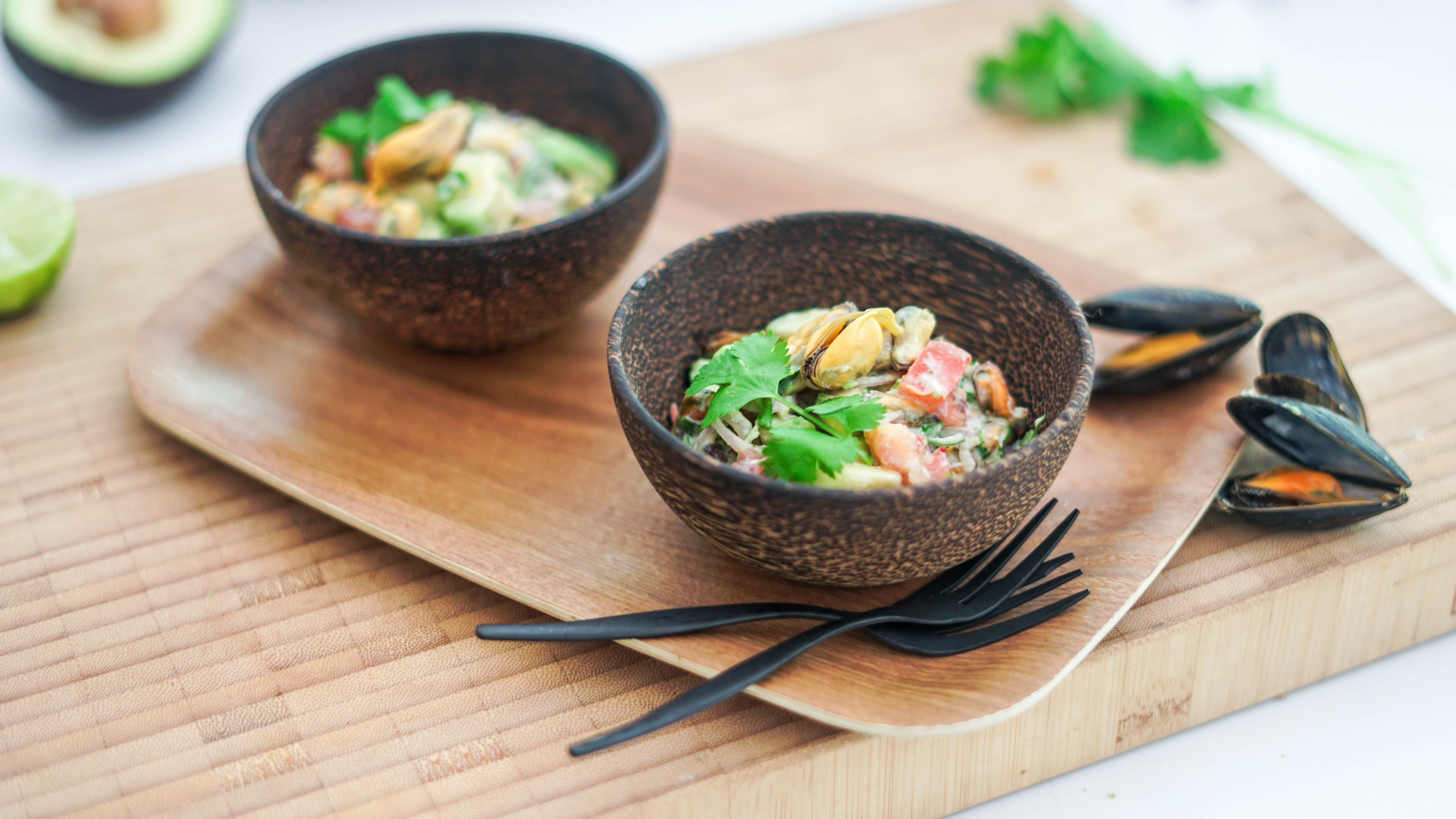 Et si vous testiez… un ceviche de moules ! Oui, oui, et pourquoi pas ? Alors bien sûr, les moules de bouchot ne sont pas intégrées crues mais bien cuites. Je vous explique tout dans la recette. D’ailleurs, cela peut en faire une belle recette antigaspi en utilisant un restant de moules d’une soirée moules frites. ;-)