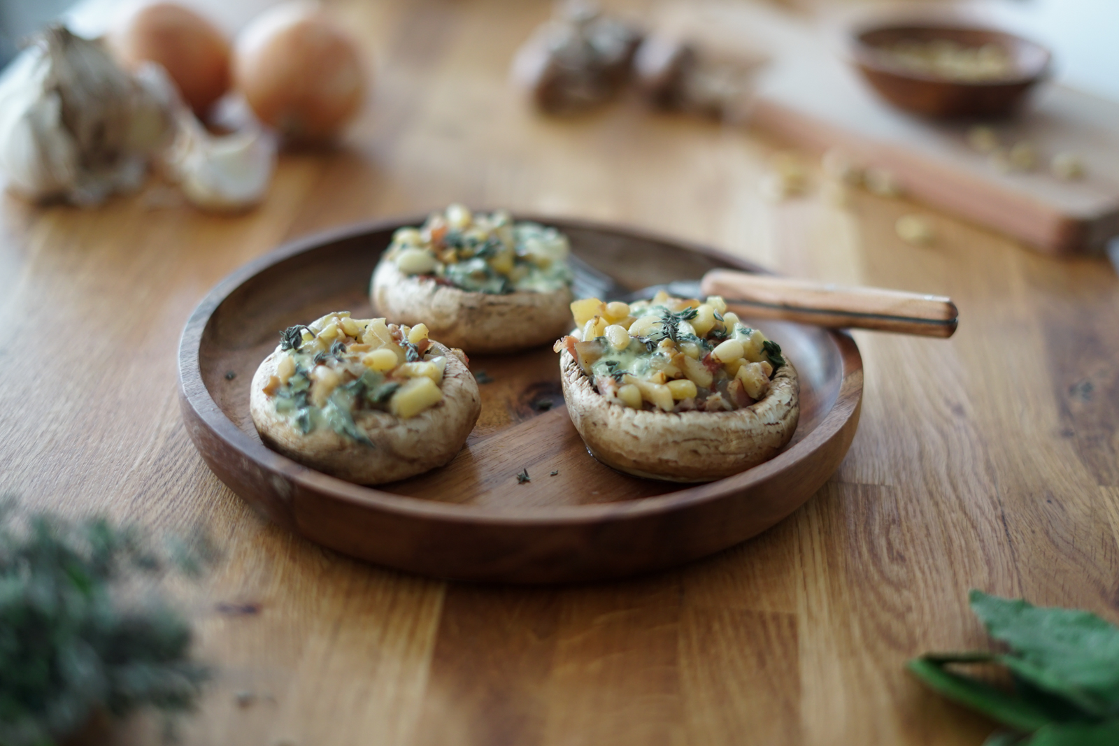 Coup de coeur pour cette recette toute simple de champignons farcis ! J’ai pris inspiration du magazine Elle à Table et c’est vraiment top. Les champignons sont bien moelleux et la farce, composée d’un mélange de pommes (fruit), de jambon de Parme, de pignons et de Fourme d’Ambert est ultra gourmande. Si vous n’aimez pas le fromage bleu, c’est également délicieux avec un bon comté, un chèvre, un encore un reblochon.