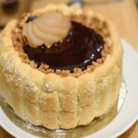 - Versez la moitié de la crème, ajoutez des cubes de poires pochées. Rajoutez le 2ème disque de biscuit à la cuillère, arrosez de sirop de punchage. Terminez par verser le restant de la crème.