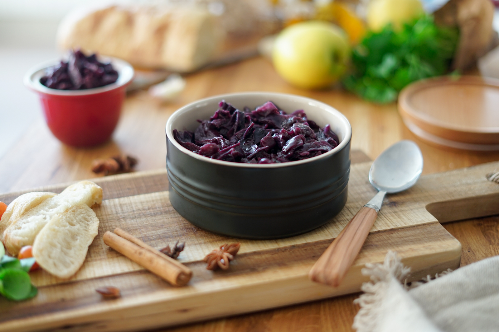 Le chou rouge c’est de saison ! Et c’est très bon … en goût et pour la santé. ;-) Pour changer de la traditionnelle salade râpée, je vous ai concocté un chou rouge braisé aux pommes. Un délice ultra simple à préparer, avec un petit goût vinaigré, et une touche de saveurs sucrées salées.