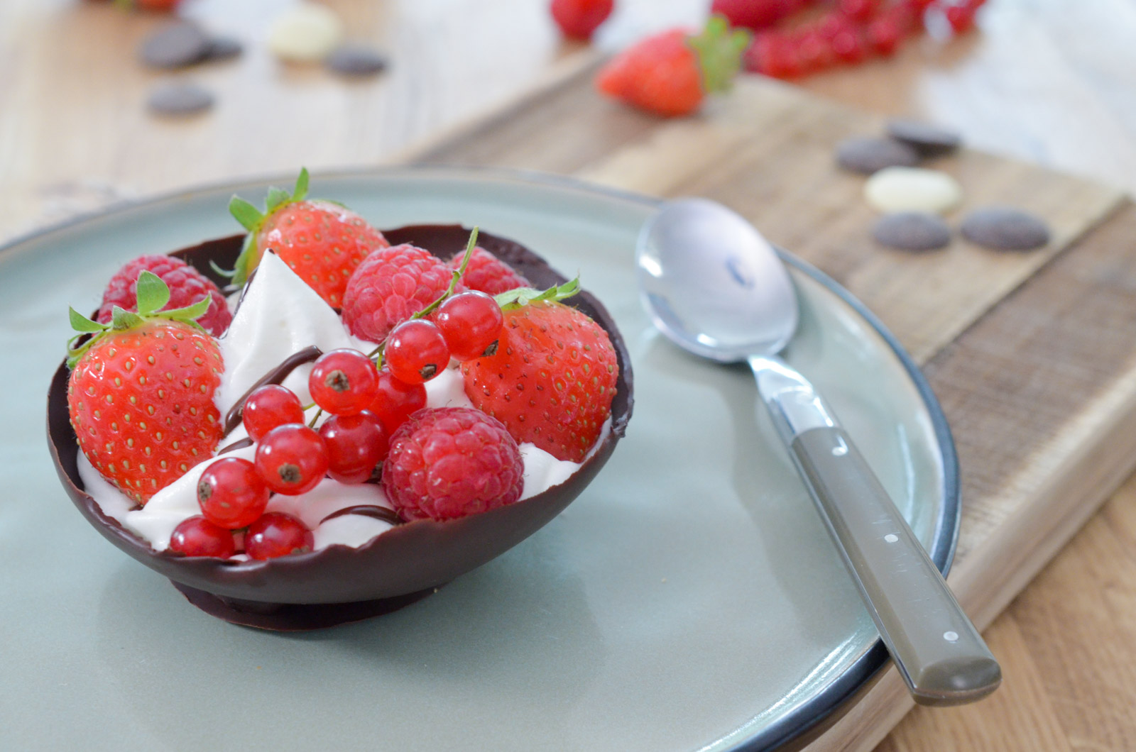 Sur le visuel d’entête, j’ai fourré mes coupelles avec une chantilly maison à la vanille, quelques fruits de saison et un coulis de chocolat. Et pour vous aider à réaliser comme il se doit ce joli dessert, je vous ai préparé une vidéo, juste ici, pour que ce soit plus facile.