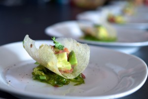 - Sur vos assiettes de présentation, déposez un lit de salade d'algues. Posez délicatement sur le dessus un croustillant au sésame. Ajoutez ensuite une cuillère de votre tartare d'avocat.
