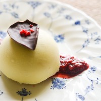 - Versez votre mousse au mascarpone dans chaque moule (remplis au 3/4), puis ajoutez quelques framboises sur le dessus. Tranchez des parts de quatre-quarts de 1cm d'épaisseur environ, puis dans chaque part prélevez un cercle à l'aide d'un emporte pièce (de la taille de la base de demie-sphères).