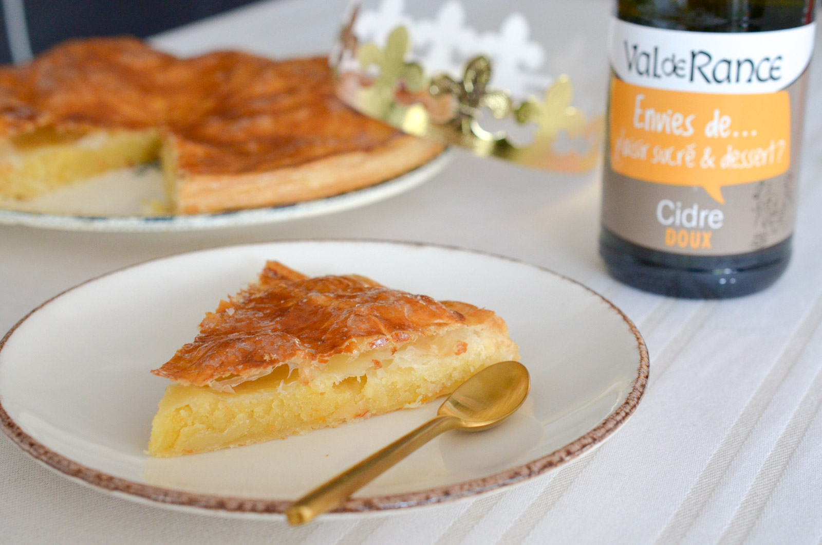 Dans quelques jours, c’est la nouvelle année ! Tradition oblige, le premier dimanche de janvier il vous faut avoir une galette des rois… alors pourquoi ne pas la préparer vous-même ? C’est très facile et toujours plus satisfaisant de l’avoir préparer à la maison, non? Voici donc une recette très simple et gourmande réalisée avec une crème de calisson que j’adore, de chez Roy René, le tout associé à un cidre Val de Rance. Enjoy ! ;-)