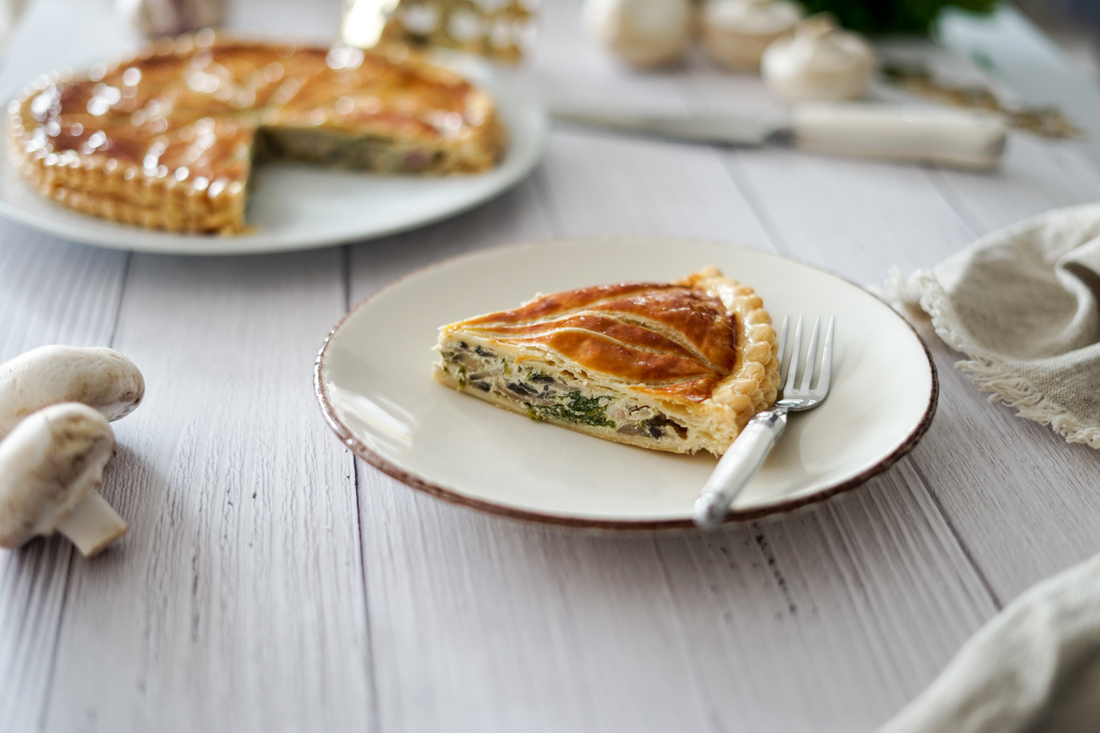 En fait, c’est ni plus, ni moins une tourte salée, n’empêche que c’est super bon. :-) Je vous ai concocté ici une galette aux champignons, petits lardons et ricotta. Le résultat est vraiment délicieux !