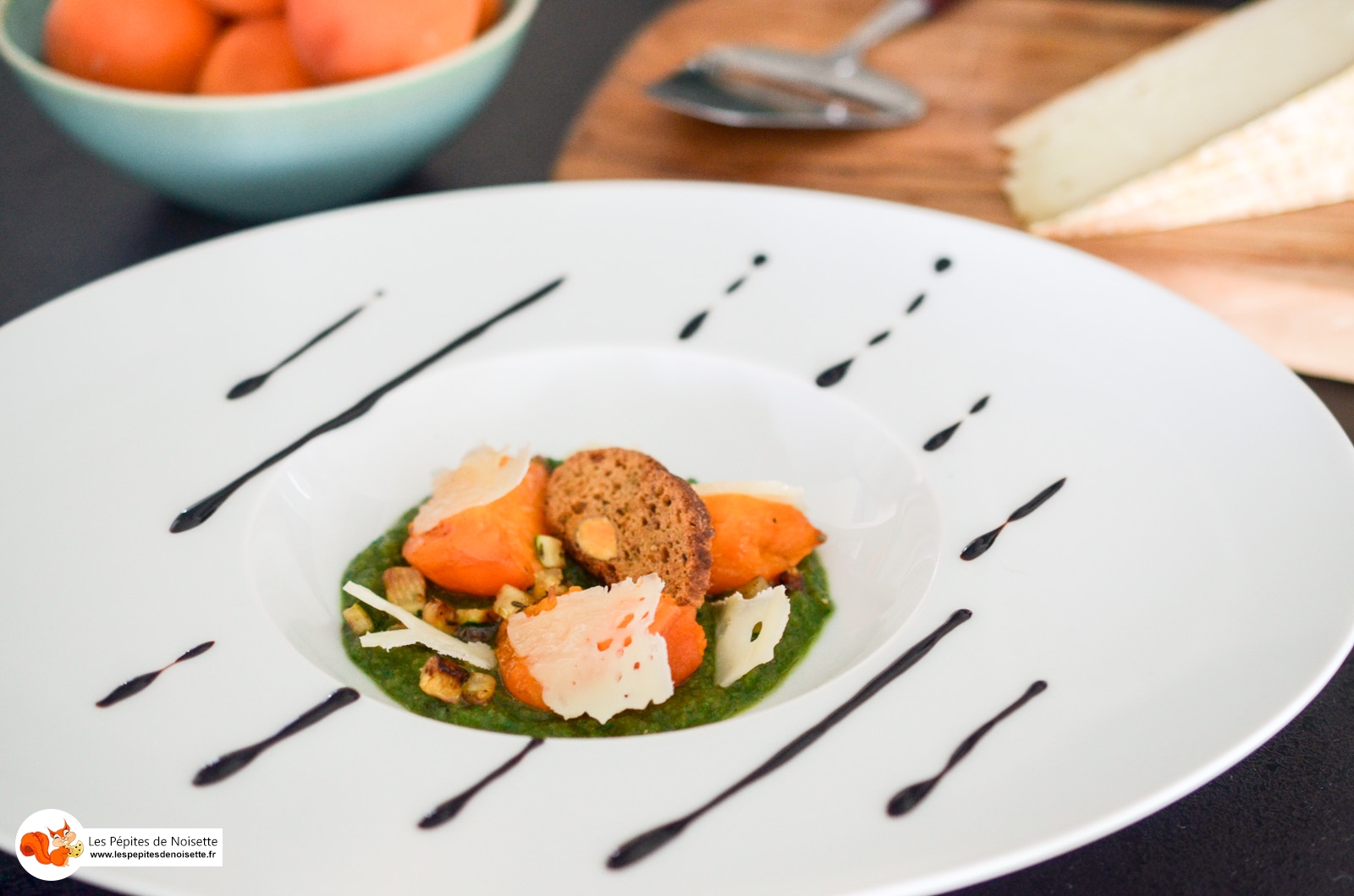 C’est la période idéale pour profiter des beaux fruits et légumes de saison. Voici une recette qui célèbre l’été avec un gaspacho frais au basilic et citron confit, qui contraste avec la douceur et la chaleur des abricots rôtis et le fromage de brebis, le Pastarou, juste fondu. Un mélange de textures, de températures, de couleurs, de saveurs, pour une explosion en bouche.