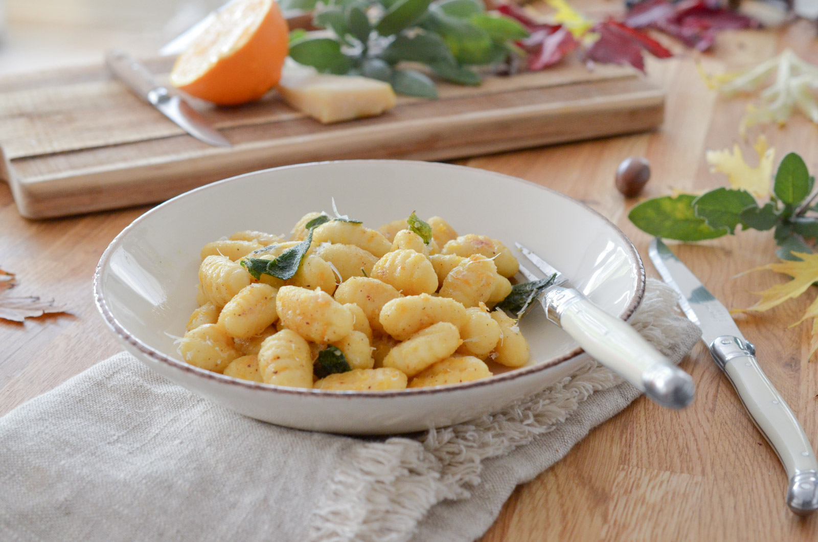 Vous connaissez les gnocchis au beurre de sauge ? Je me suis fortement inspirée de cette recette tout en lui redonnant un petit coup de peps, presque un petit coup festif, avec les délicieuses saveurs de zeste et de jus d’orange. La sauge est une herbe que l’on ne cuisine pas tellement et pourtant c’est délicieux ! Son goût est assez spécial alors si c’est la première fois que vous cuisinez avec, commencez par en mettre une petite touche et rajoutez-en au besoin en en faisant frire dans une poêle à côté.