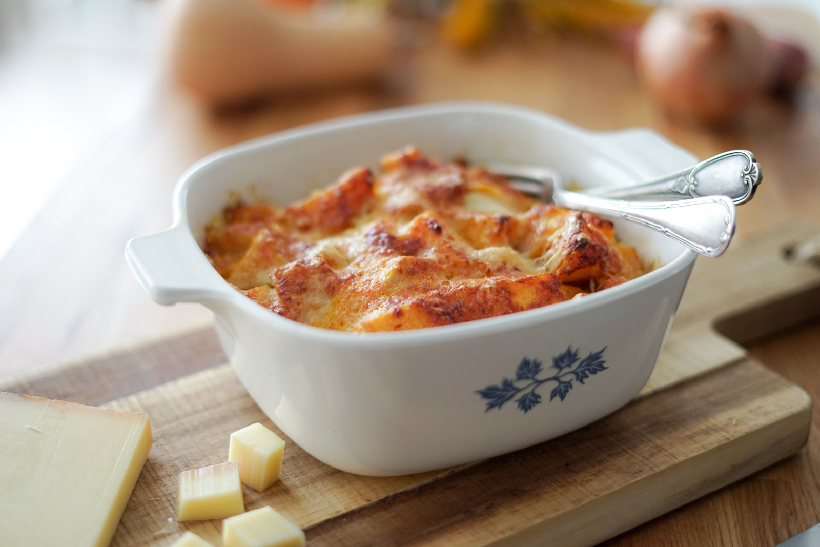 J’adore le gratin de courge ! Ca change de la pomme de terre et c’est hyper réconfortant. Je vous donne ici ma recette très simple et rapide à préparer avec une touche de crème, de fromage et de lardons. Pour les végétariens, n’hésitez pas à enlever les lardons, ce sera tout aussi bon, vous pouvez simplement rajouter une touche de muscade ou de curry pour ajouter du goût.