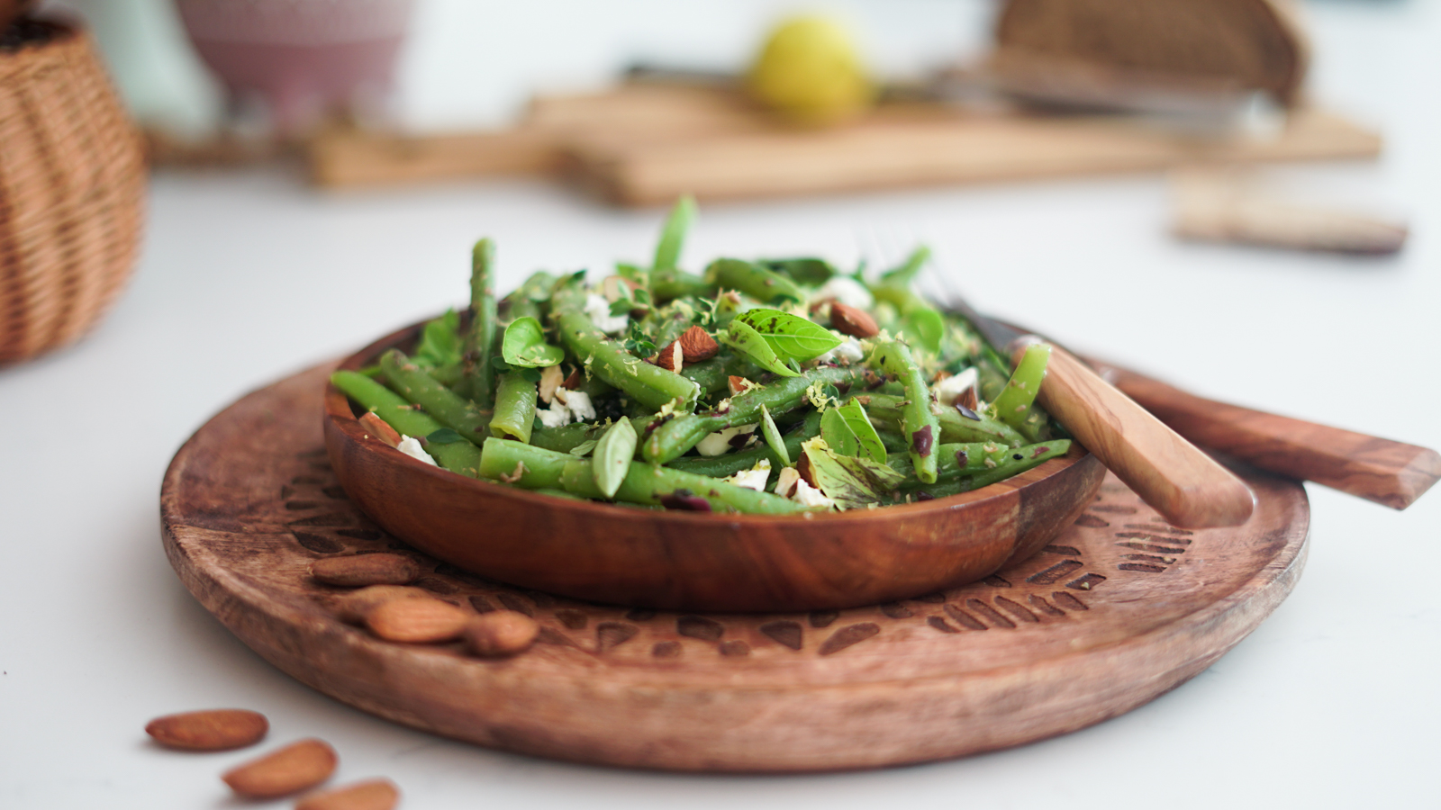 L’idée ici est d’utiliser peu de produits, mais de bons produits, afin de gagner en saveur. :-) D’où l’idée de revenir aux haricots verts frais, d’utiliser de bonnes amandes issus d’agriculteurs français (comme celles de chez Terre d’Amandes), et une bonne tapenade.