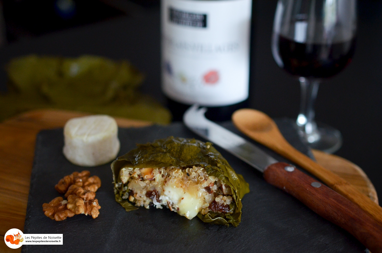 Les feuilles de vignes encerclent une farce délicate à base de quinoa avec un centre moelleux de fromage fondant. Un vrai délice à déguster sur un plateau de fromage, en entrée ou même tout simplement accompagné d’une salade verte et de pain pour un repas complet.