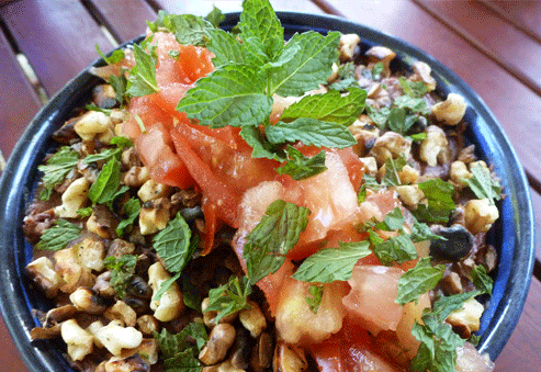 5. Juste avant de le servir, parsemez de noix concassées, de quelques cubes de tomates fraîches et de menthe, et servez avec du pain pita de préférence.