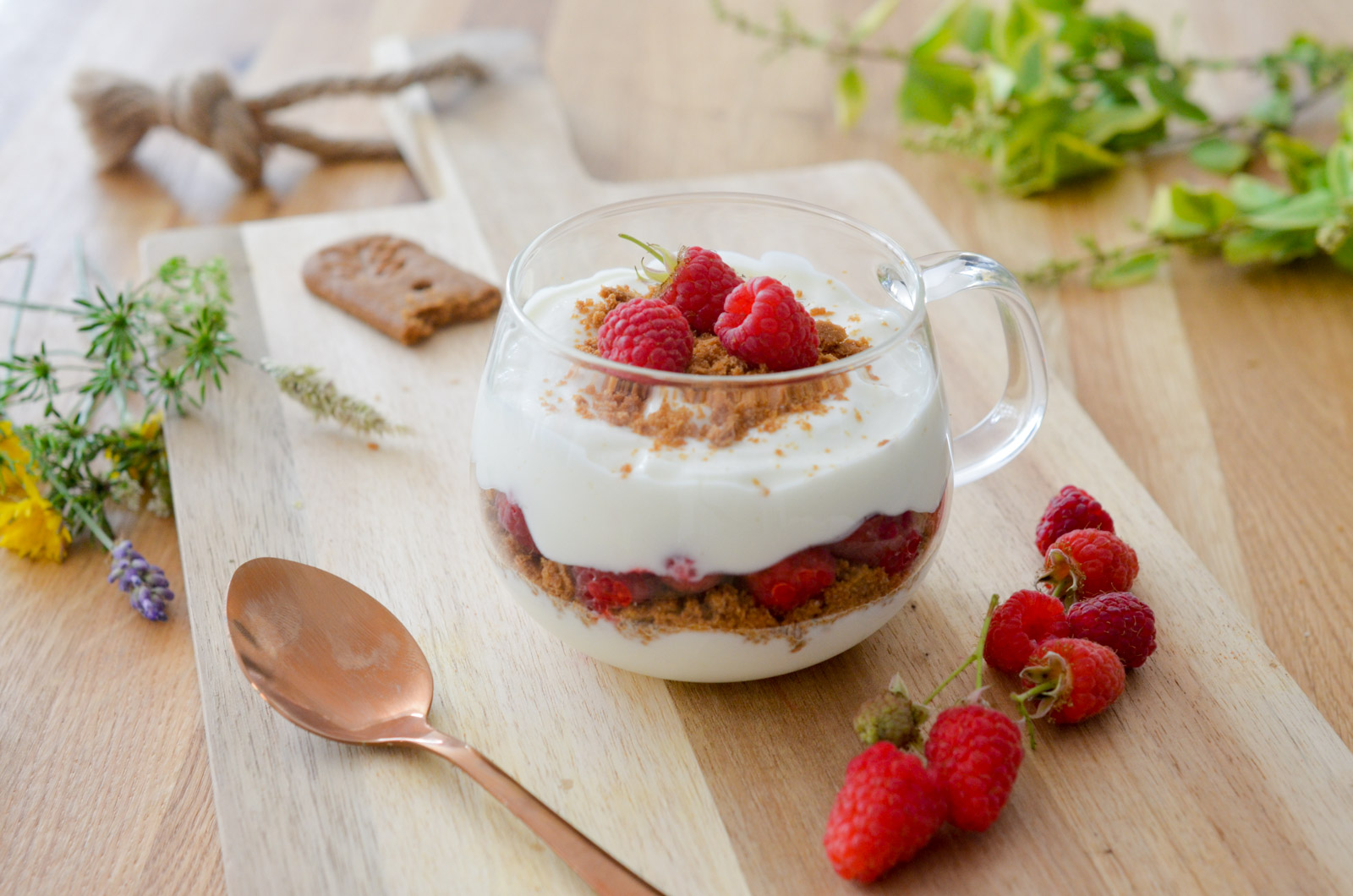 Dans vos verrines, dressez votre dessert en alternant une couche de mousse au citron, quelques brisures de biscuits et des framboises fraîches jusqu’à épuisement des ingrédients.