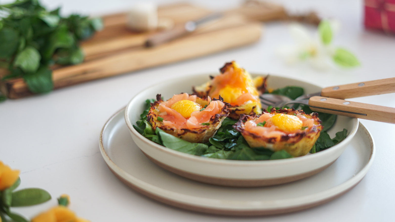 En panne d’idée pour votre entrée de Pâques ou pour le brunch ? Voici les nids de Pâques aux pommes de terre. Une idée toute simple mais délicieuse que j’ai légèrement twistée en ajoutant une touche chic et gourmande avec du chèvre et du saumon fumé. Vous n’êtes bien sûr pas obligé d’en mettre … mais c’est très bon ainsi ! Et si vous n’aimez pas le saumon ou que vous n’aimez pas ça, remplacez-le par du jambon, des chips de lard fumé ou pour une version veggie dasn champignons ou des tagliatelles d’asperges.