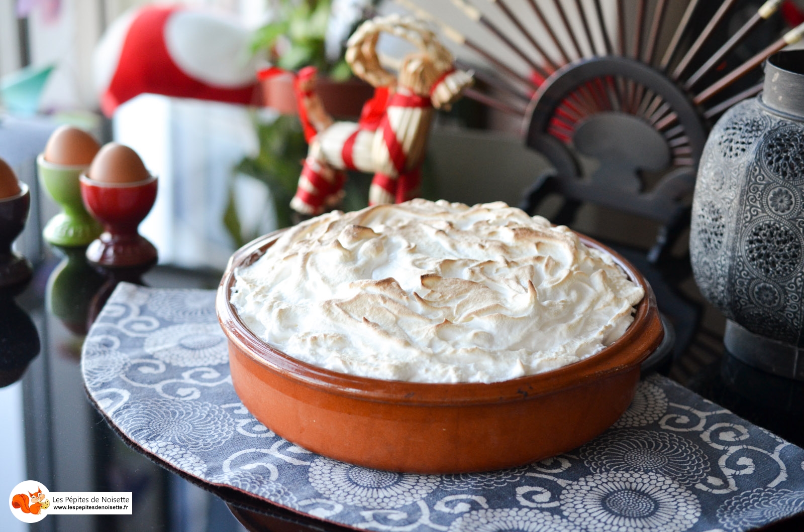 Vous pouvez également réalisez ce dessert en gâteau (et non dans un plat), en recouvrant bien les bords de meringue. Il est dans ce cas plus facile de le réaliser si vous avez un chalumeau pour colorer la meringue sur toutes les faces.