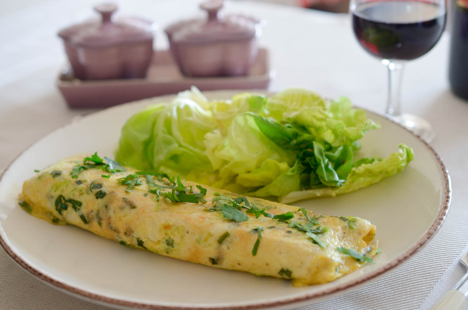 - Procédez de même pour les 3 autres omelettes et servez immédiatement accompagnées d’une belle laitue fraîche et de la sauce coriandre.