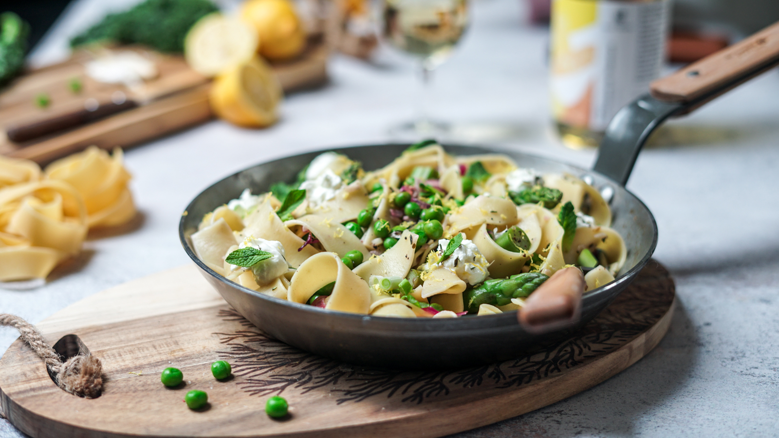 Pour encore plus de saveur, mélangez le fromage frais avec des herbes fraiches, quelques oignons nouveaux ciselé et quelques zestes de citron avant de déposer les quenelles sur les pâtes.