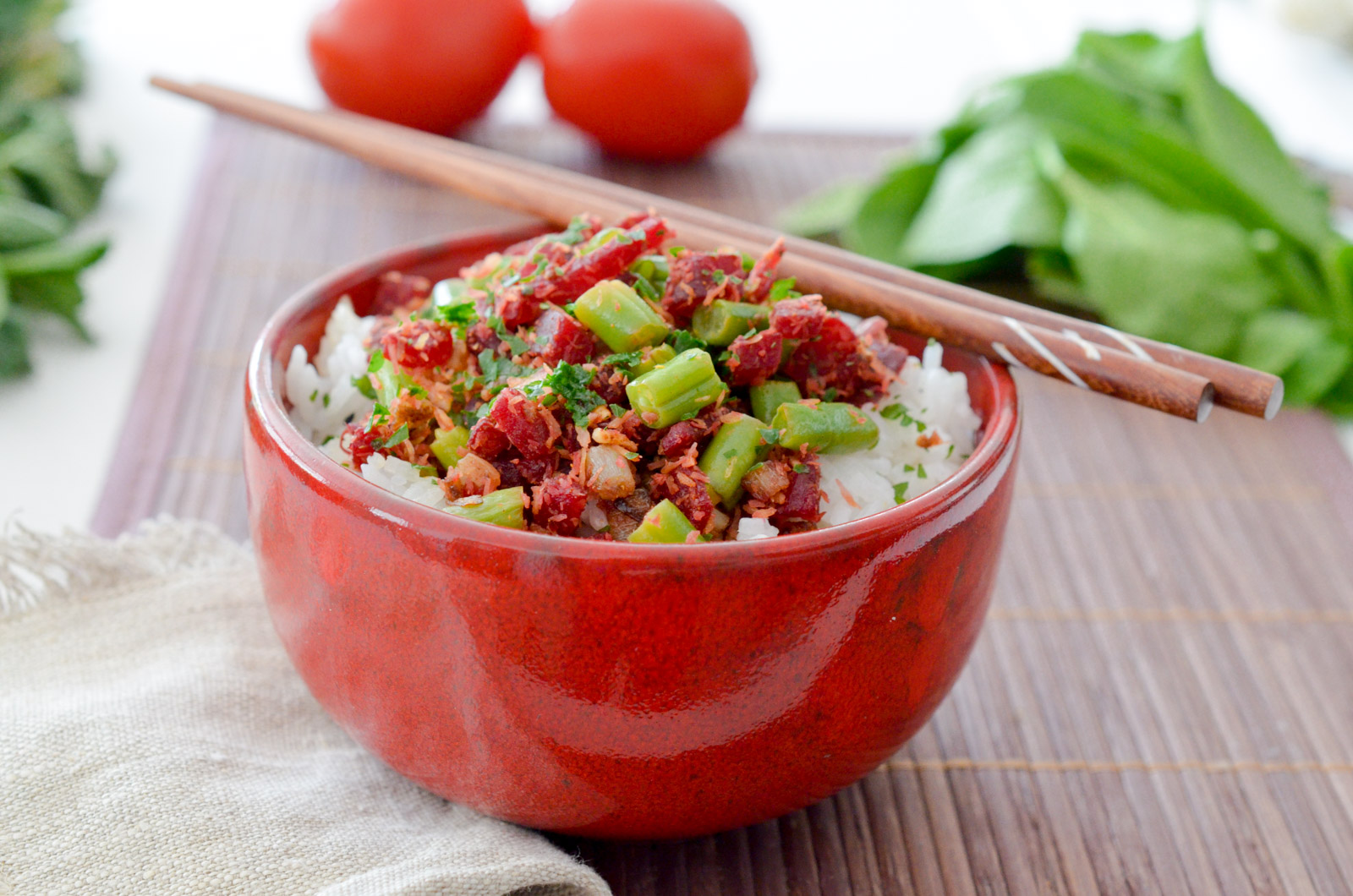 Envie de voyage et d’évasion? Destination l’Inde, et plus précisément le Kerala avec cette recette simplifiée et inspirée d’une célèbre spécialité locale: les haricots verts Thoran. A base de noix de coco et de curry, c’est un délice simple et généreux, à servir tout simplement avec du riz et pourquoi pas une pointe de chutney de raita au concombre.