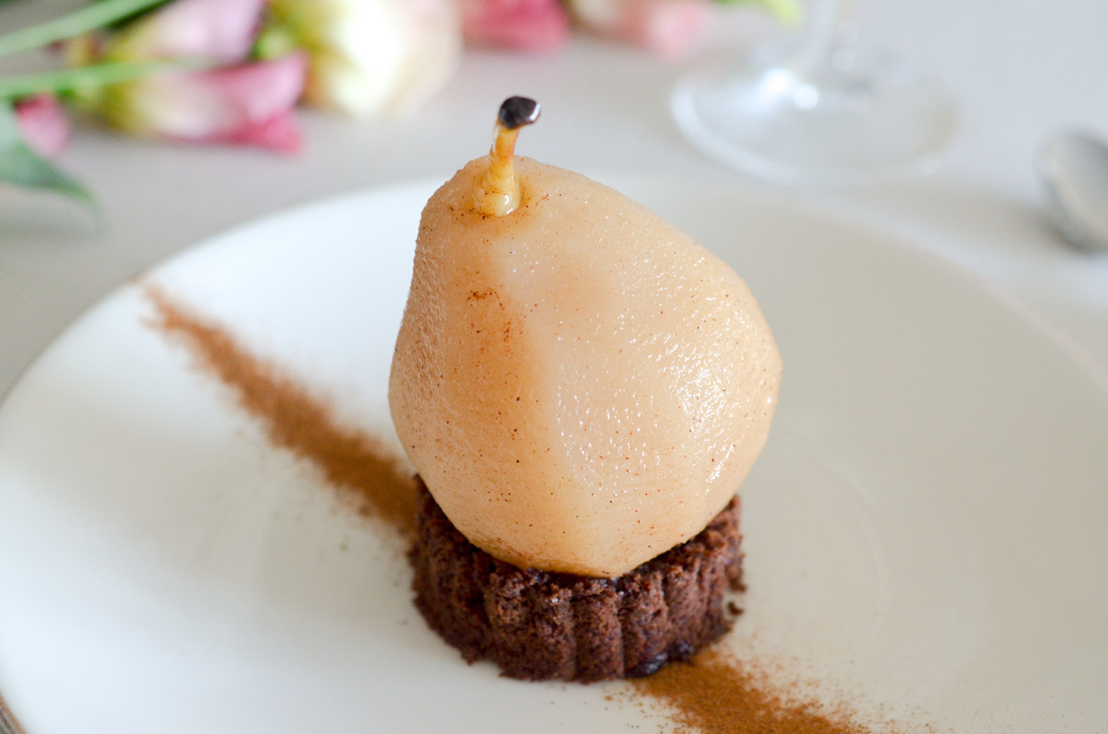 Poire – chocolat, quelle meilleure association pour un dessert ? … Ayant un pot de pâte à tartiner aux gavottes dans mon placard, j’ai tenté une petite expérience qui marche du tonnerre et que je voulais vous partager: des poires au sirop maison renfermant un coeur chocolat croustillant et fondant sur un lit de biscuit moelleux tout choco… Faut il réellement en dire plus ? Je vous laisse savourer… :)