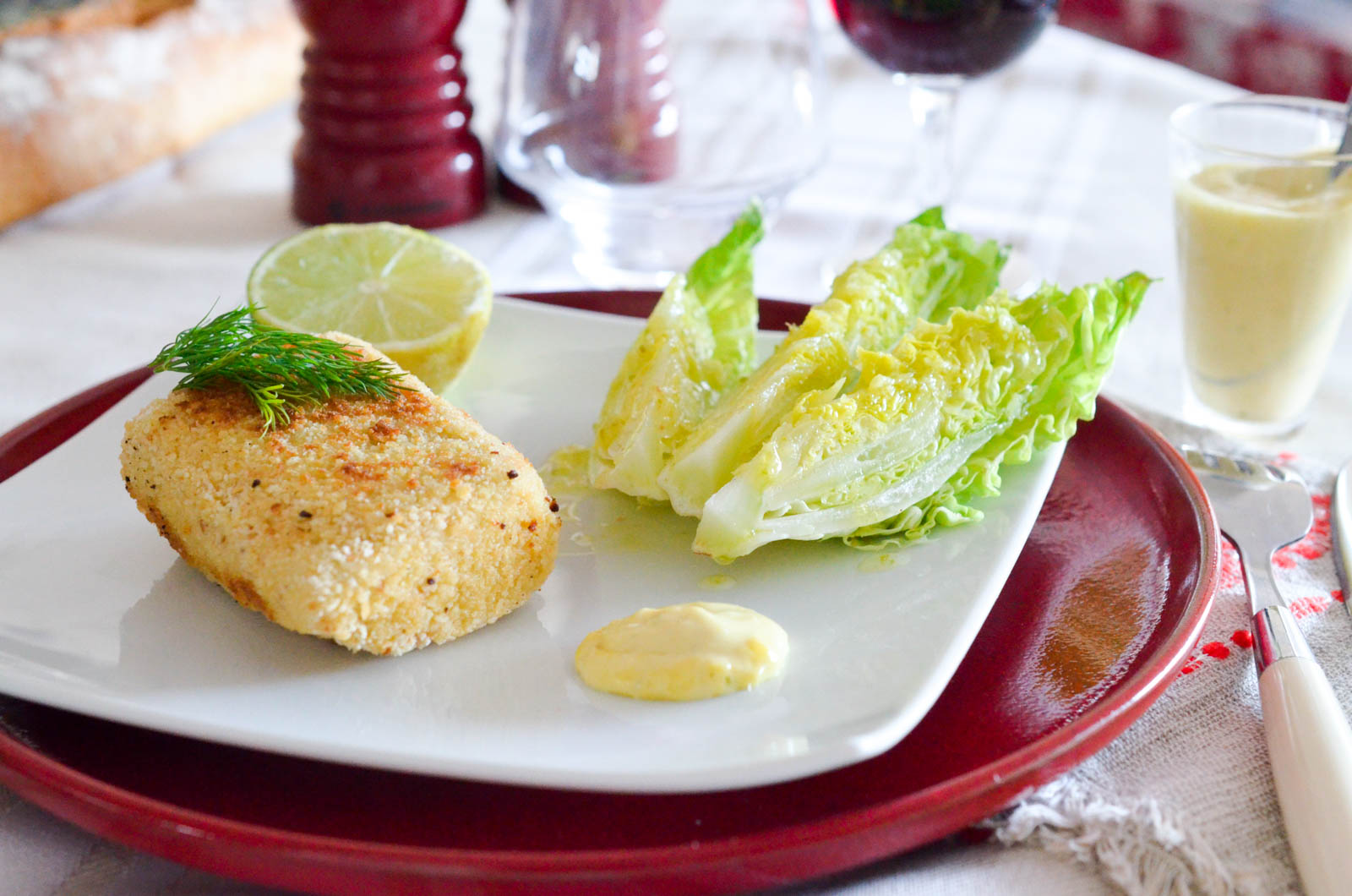 - Servez le poisson sur les assiettes accompagné de mayonnaise et de salade.