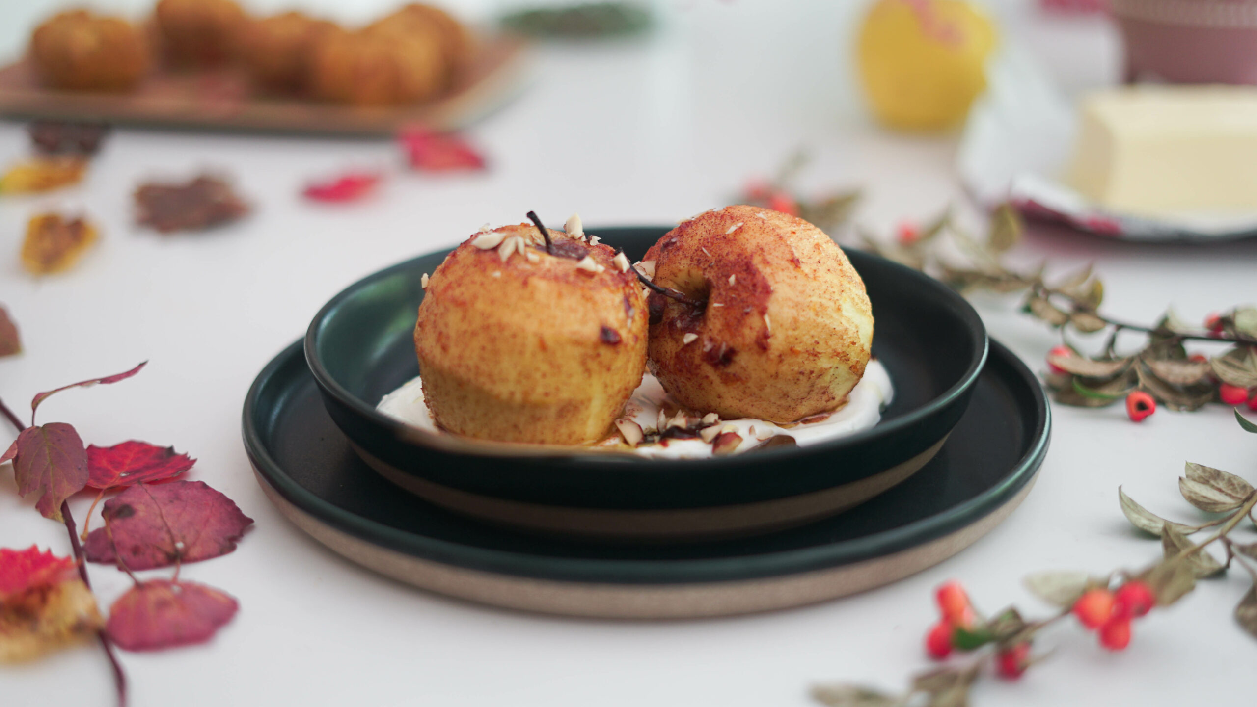 - Dégustez vos pommes au four tièdes, natures avec une boule de glace vanille, sur un lit de yaourt ou de faisselle, et ajoutez quelques noisettes torréfiées et concassées sur le dessus pour apporter du croustillant.