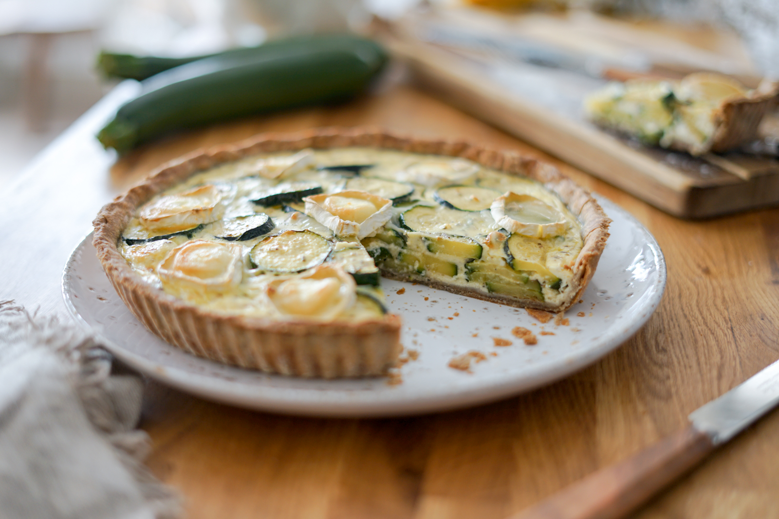 La quiche courgette chèvre … je dois dire que ce doit être une de mes préférées. Simple, léger, gourmand et rapide à préparer. Vous pouvez utiliser une pâte à tarte du commerce bien sûr, c’est encore plus rapide et il y en a de très bonnes, mais sur la photo, j’ai utilisé une base de pâte brisée au blé noir. Je vous ai mis la recette ici, le résultat est divin.