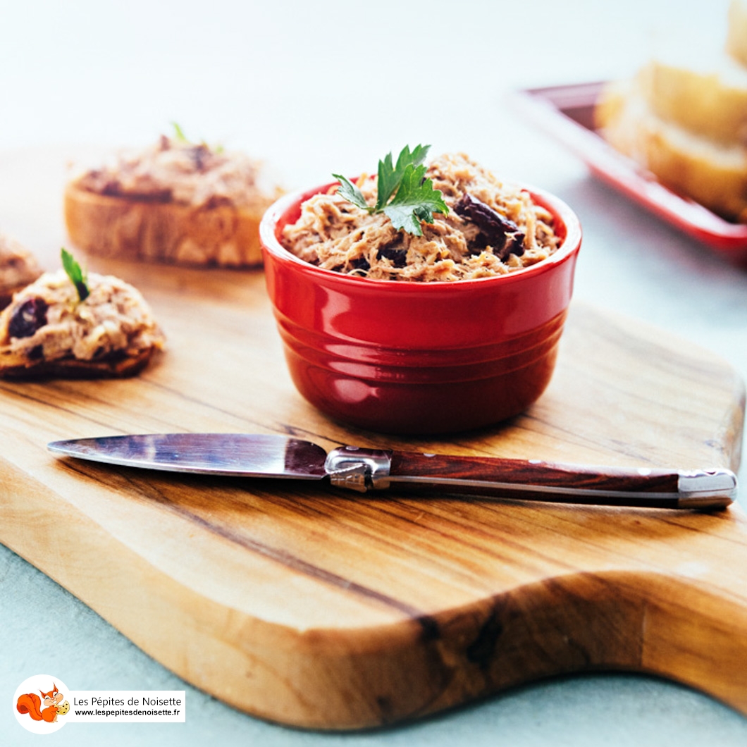 Après mon velouté de carottes aux châtaignes, voici une autre recette de terroir développée pour Le Creuset, et shootée par Franck Juery. Du sucré-salé pour cette recette de rillettes, à déguster lors d’un apéritif chic entre amis.
