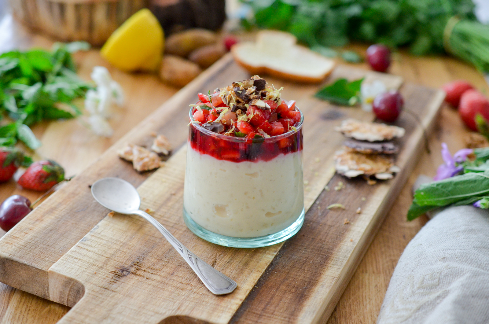 Le riz au lait à ma façon ! Le riz au lait c’est très bon… mais le riz au lait avec un tartare de fruits rouges aux herbes et au citron, c’est encore meilleur… surtout quand on y rajouter un petit croustillant de biscuits, qui rend irrésistible cet incontournable des desserts français.