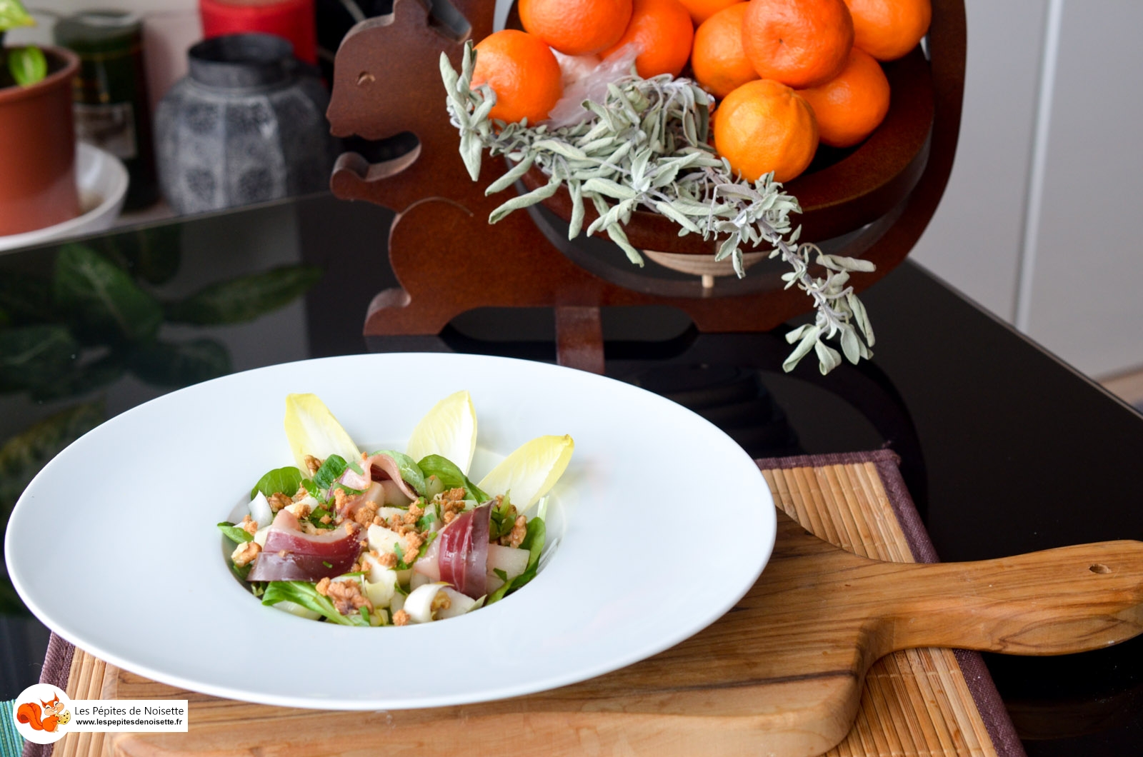 Pour une salade encore plus colorée, variez les variétés d’endives en troquant une des endives pour une endive rouge (ou deux car elles sont plus petites en général).