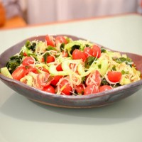 - Mélangez tous les ingrédients de la salade dans un grand bol.