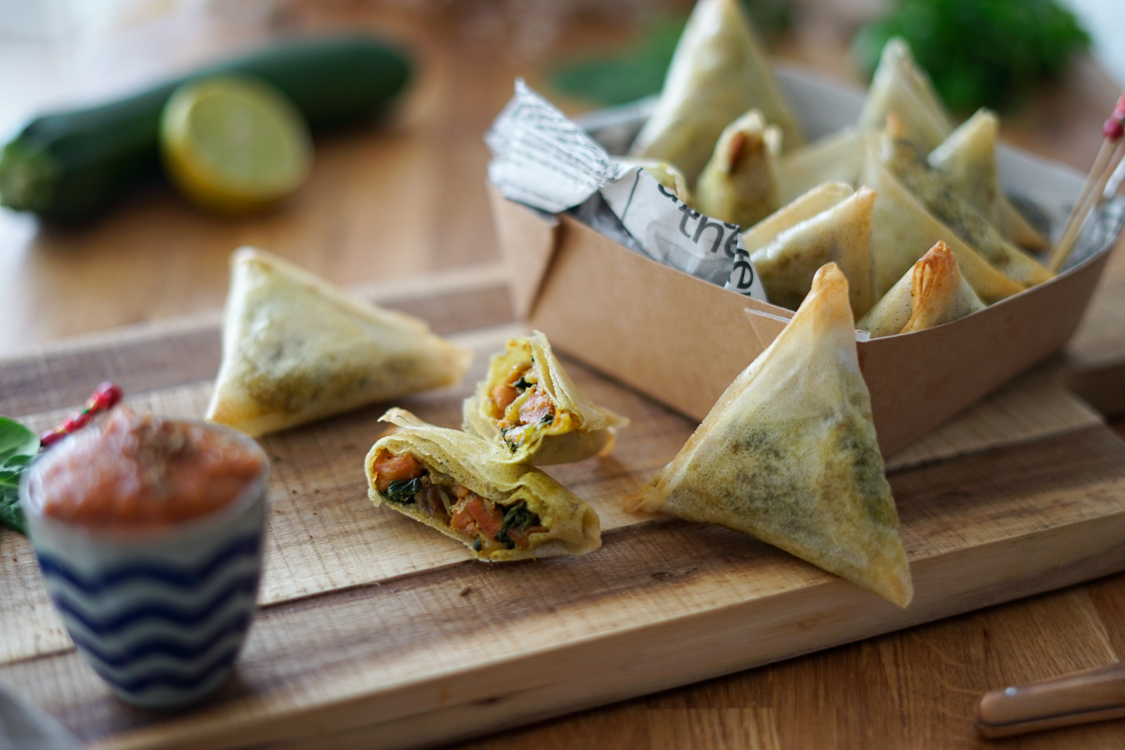- Dégustez les samoussas bien chauds avec la sauce tomate à l’indienne.
