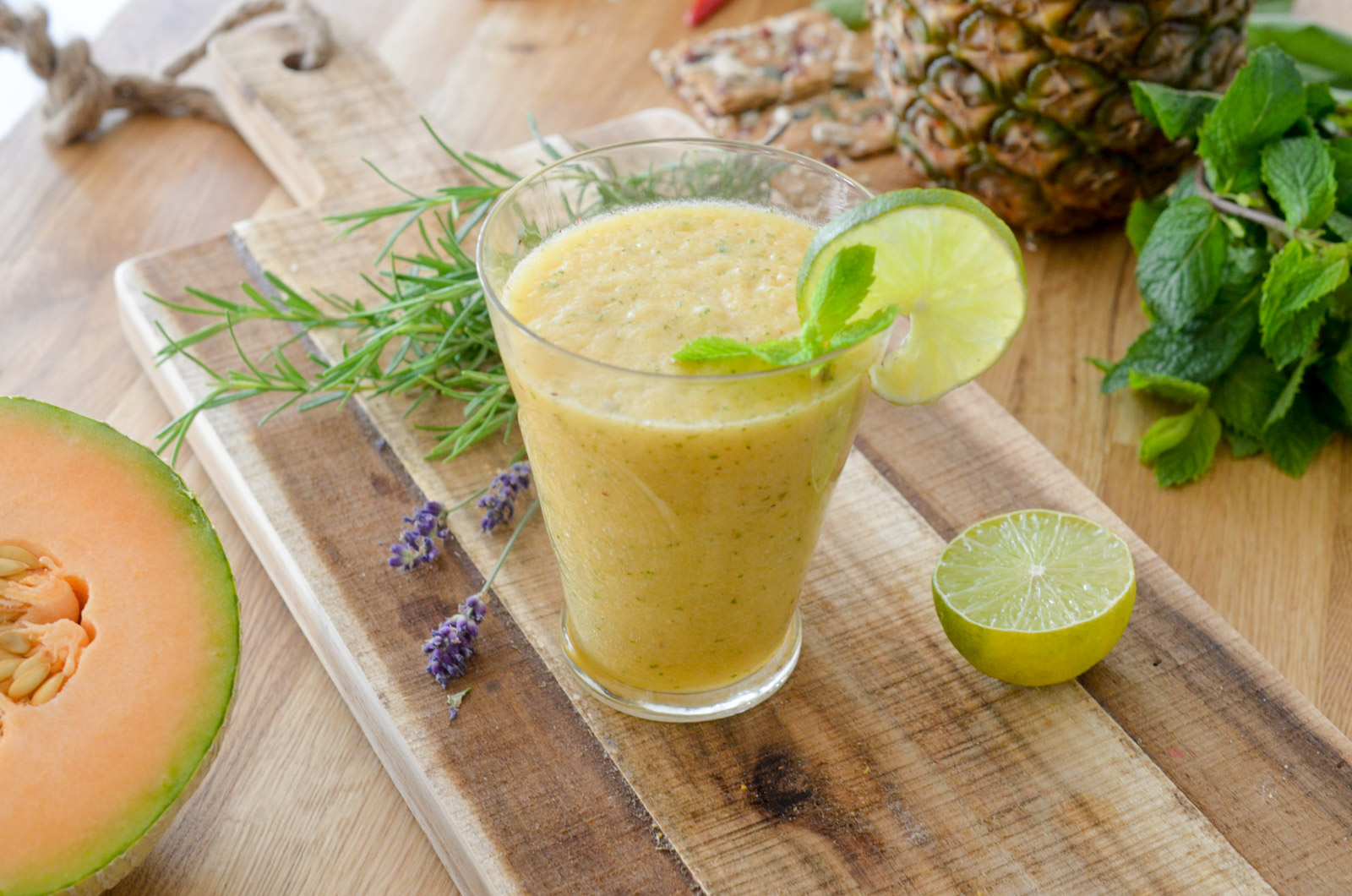 - Epluchez et coupez le melon ainsi que l’ananas en gros cubes. Mixez tous les ingrédients à l’aide d’un blender. Dégustez bien frais.