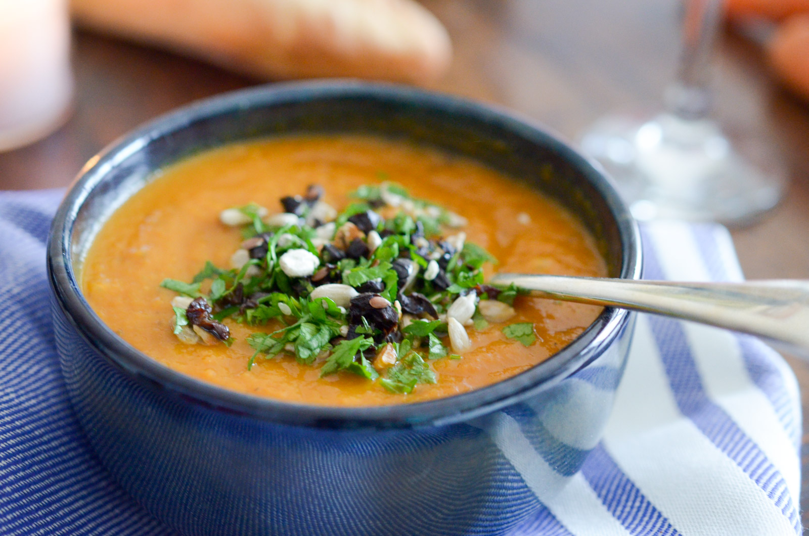Une soupe de carottes gourmande et réconfortante relevée par une pointe de graines de fenouil et d’olives qui apporte une touche agréable de je ne sais quoi. A préparer et déguster en 15 minutes chrono, pourquoi continuer à acheter des soupes industrielles quand c’est tellement simple et rapide? :)