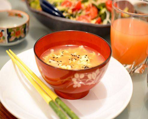 Traditionnellement servie dans les restaurants chinois, cette soupe est une adaptation à la japonaise. Réalisée en un rien de temps, elle convient parfaitement pour toute occasion et est parfait pour se réchauffer ou se mettre en appétit.