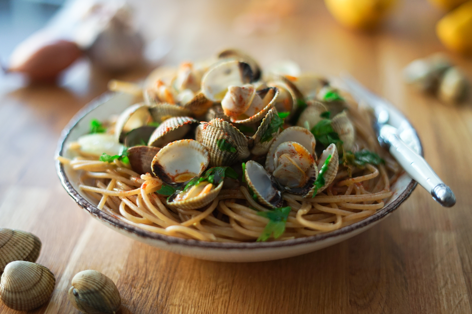 Comme tu me tentes avec ces spaghettis aux coques !