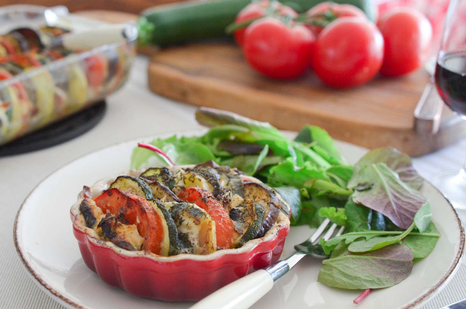 - Dans un plat huilé, alternez des couches de légumes avec des couches de fromage jusqu'à épuisement des ingrédients. Assaisonnez bien avec sel, poivre et thym.