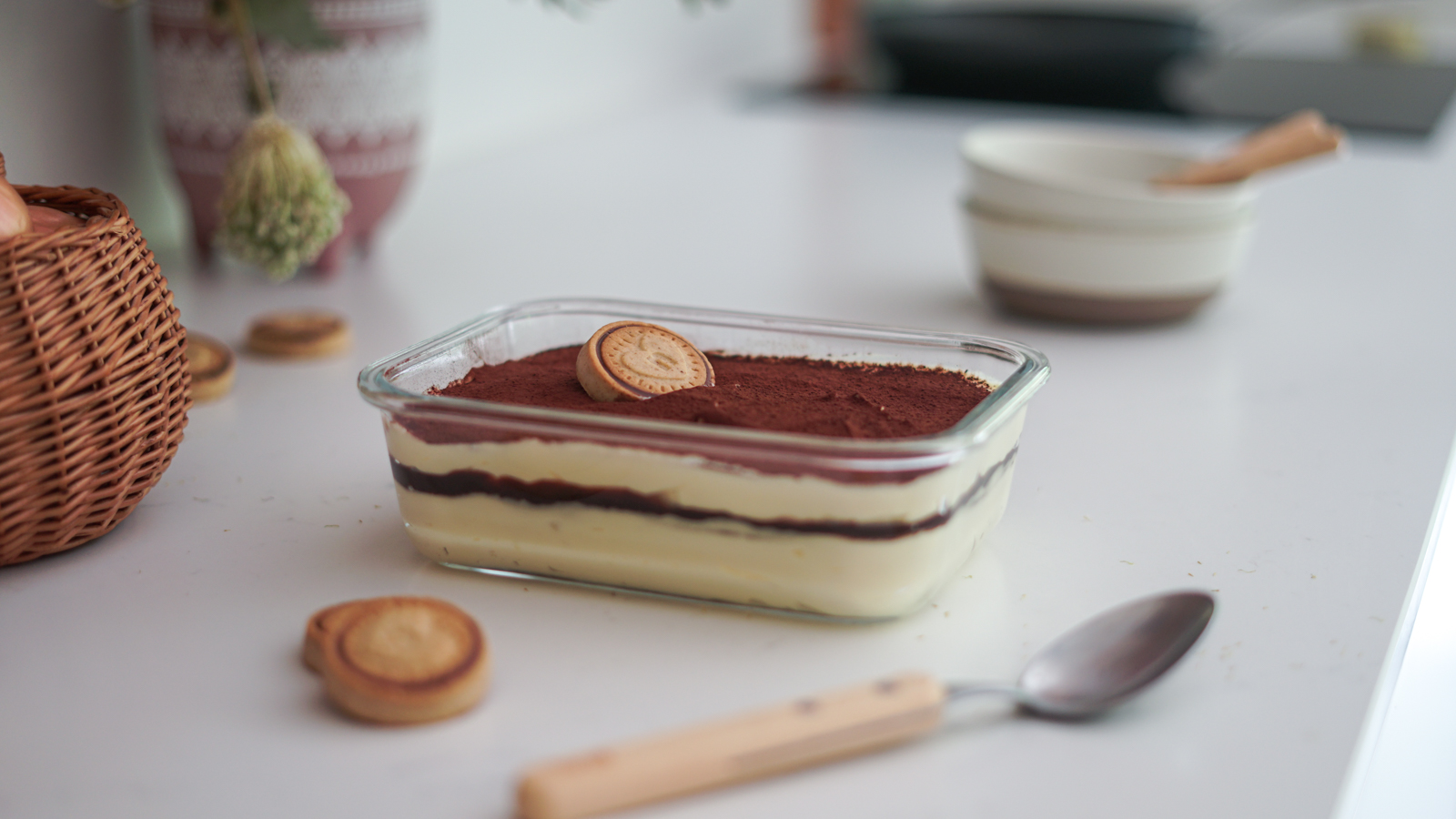 - Trempez les biscuits dans le café froid. Répartissez la moitié dans le fond de 4 à 6 verres ou dans un plat à gratin. Ajoutez un peu de pâte à tartiner, puis un peu de crème au mascarpone. Recouvrez du reste de biscuits (réservez quelques biscuits pour le décor), d’un peu pâte à tartiner, et du reste de crème.