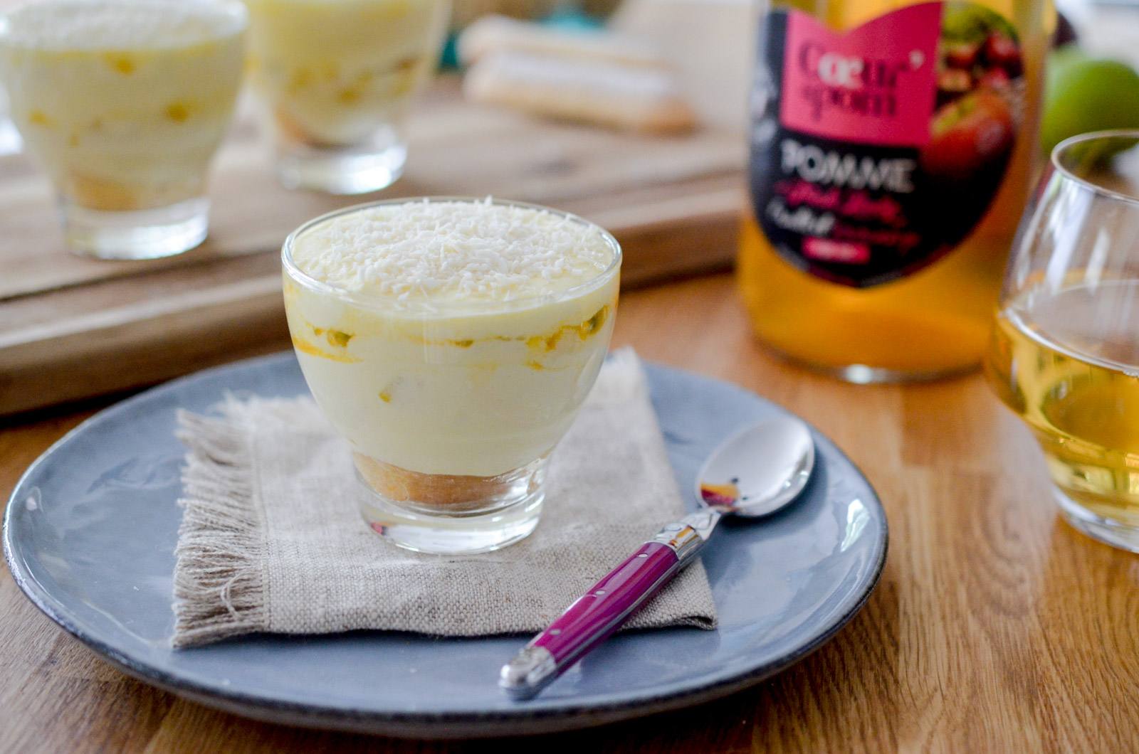 - Trempez les biscuits à la cuillère dans le sirop à l’orange. Disposez au fond de vos verrines (ou dans un grand plat familial). Ajoutez quelques morceaux de mangue, un peu de pulpe de passion, puis la crème au mascarpone. De nouveau, placez une couche de biscuits à la cuillère imbibés, des morceaux de mangue, de la pulpe de passion et terminez par la mousse mascarpone.