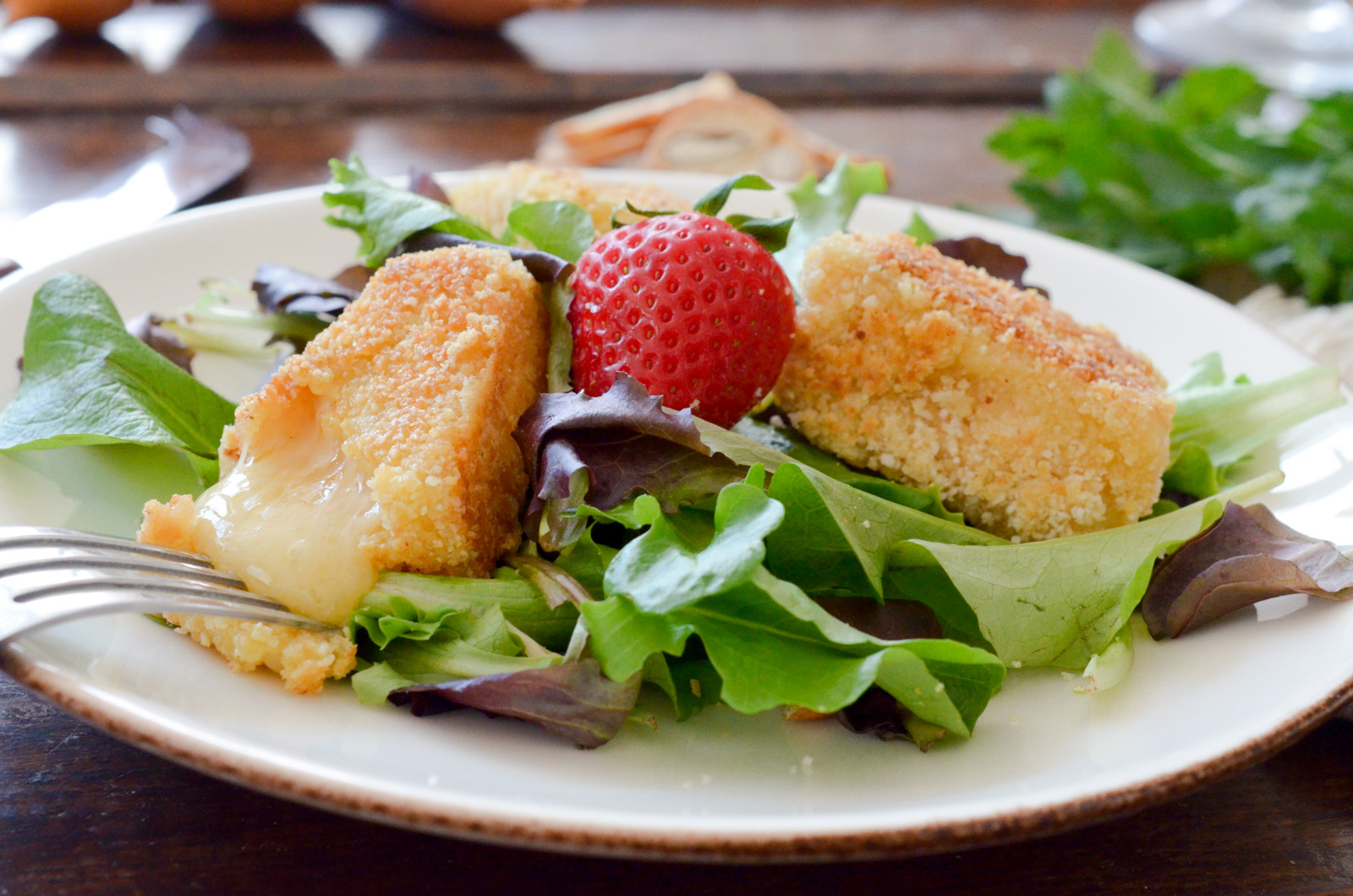 Trempez les morceaux de Tomme dans la farine, puis dans l’œuf puis dans la chapelure. Trempez de nouveau dans l’oeuf puis dans la chapelure.
