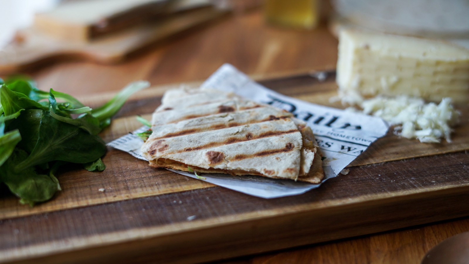 - Repliez la tortilla en portefeuille et faites poêler le tout quelques minutes dans une poêle antiadhésive bien chaude.