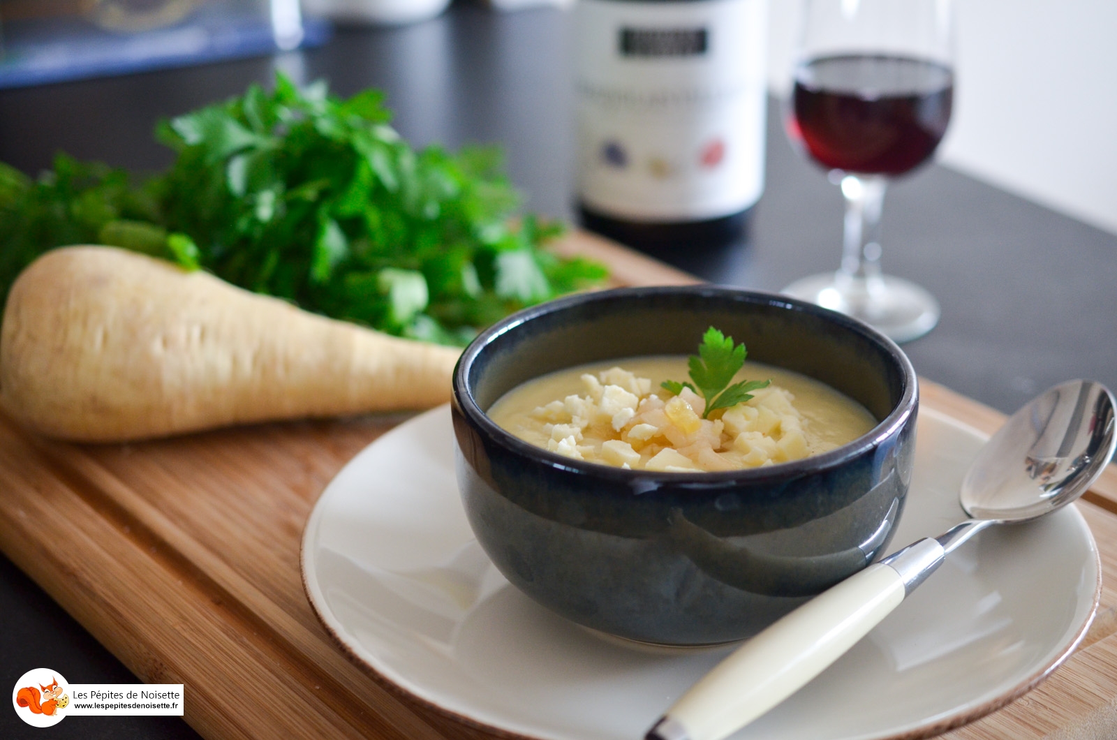Un velouté réconfortant mais léger (le panais est un légume léger de la même famille que la carotte, riche en fibres et en antioxydants). J’y rajoute une note originale grâce à la saveur de la poire et du gingembre, ainsi qu’une touche de fromage, le Merle Rouge (si vous n’en n’avez pas, n’hésitez pas à remplacer par un autre fromage au lait cru).