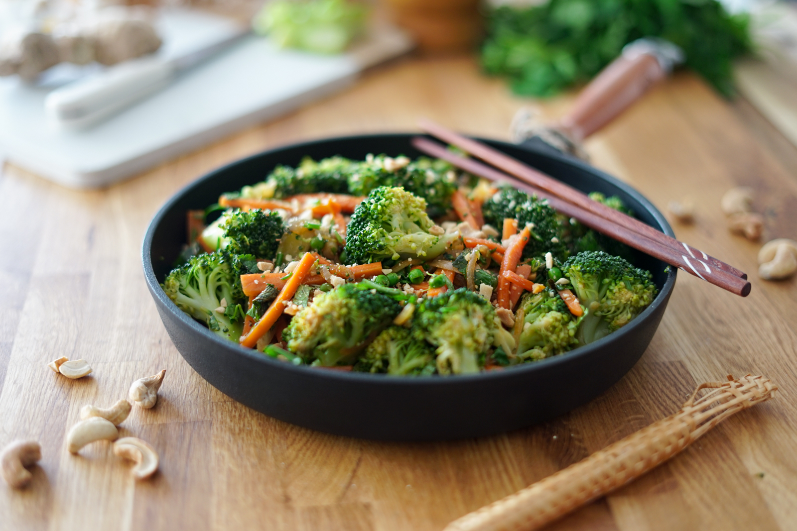 Vous cherchez une recette très simple de légumes sautés au wok à l’asiatique ? J’ai ce qu’il vous faut ! Il me restait des brocolis et des carottes dans le frigo et l’autre jour, en passant chez Zôdio pour trouver quelques décos de table pour mes photos, j’ai découvert leur rayon d’épicerie fine (très pratique). Ni une, ni deux, j’y ai pris de la sauce soja (à laquelle j’ai rajouté un peu d’huile de coco et des pépites de chocolat pour une autre recette) et hop en cuisine !