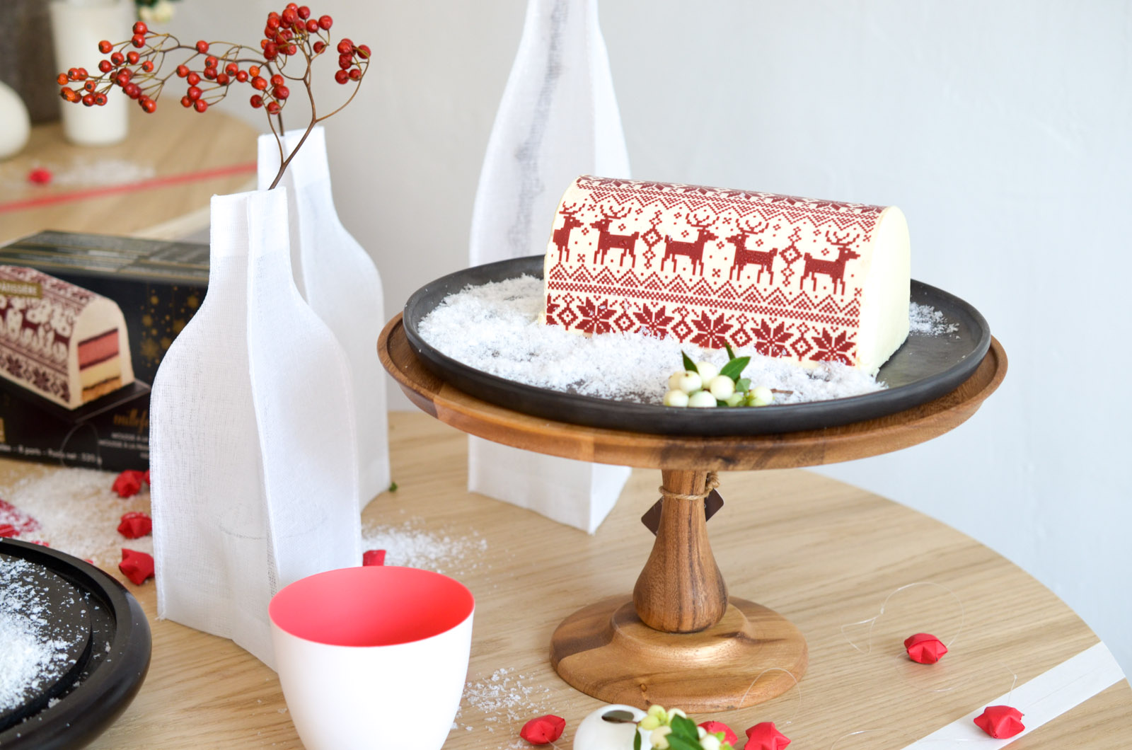 De beaux gâteaux qui font leur effet: entre la bûche glacée façon chaîne de montagnes et son lac gelé, la bûche habillée d’un motif tiré des contes et légendes des pays Nordiques, sans parler du gâteau « forêt enneigée », vendu sous sa cloche transparente… il y aura forcément un dessert qui saura vous tenter.