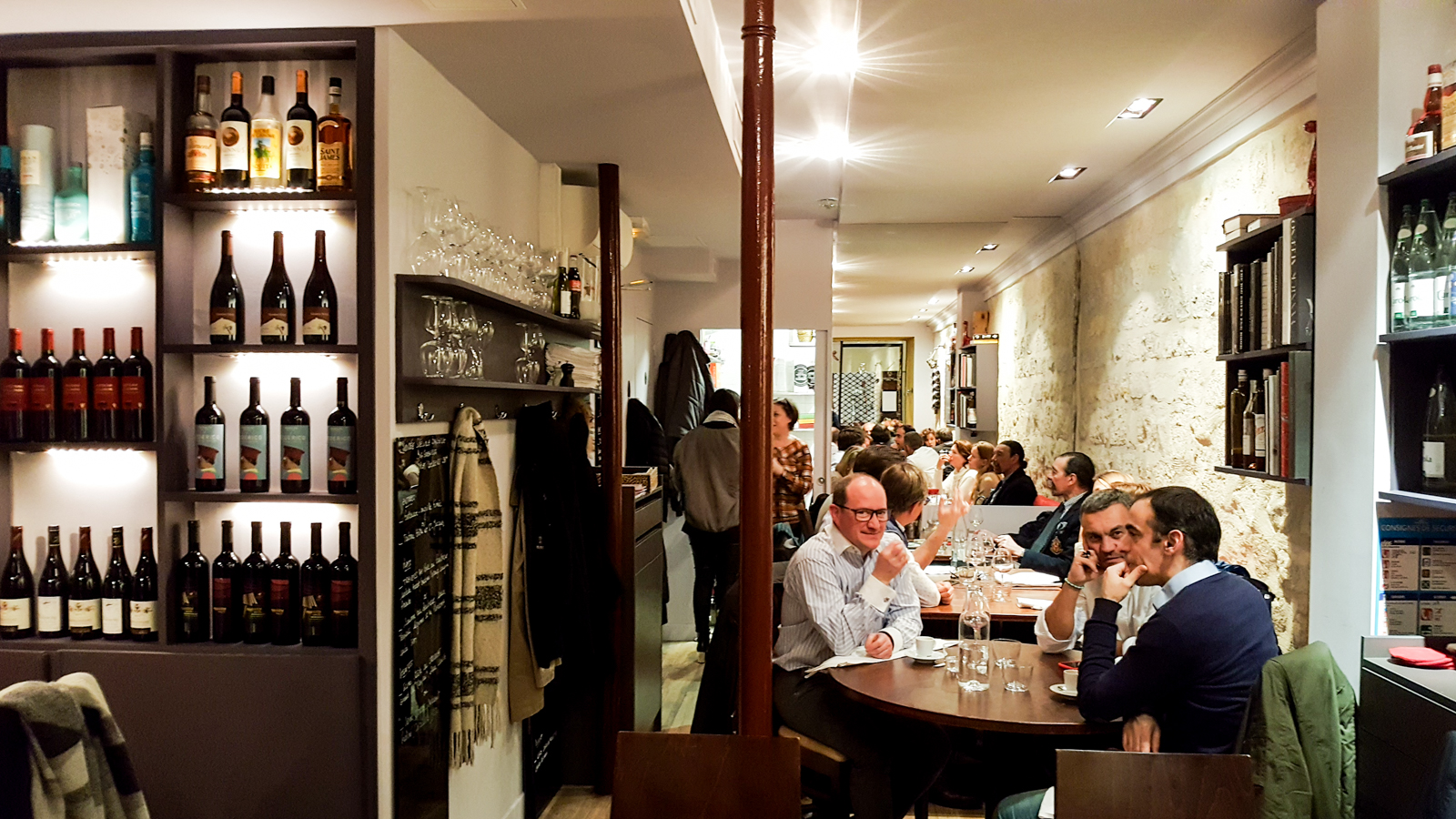 La salle de L’Escient n’est pas bien grande, assez intimiste, avec des lumières tamisées, on s’y sent bien, un point c’est tout. Niché au coeur de la rue Poncelet réputée pour ses commerces de bouche, on se sent à l’aise, le salon est cosy et convivial et l’ambiance résolument dans le style « auberge » avec sa longue banquette rouge et ses pierre apparentes.